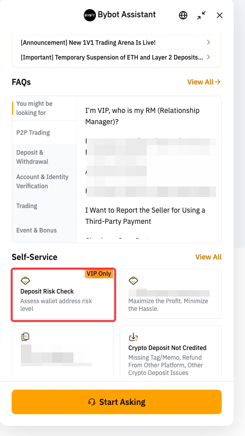 Fitur ini hanya tersedia untuk pengguna VIP. Setiap level VIP diberikan sejumlah pertanyaan penilaian risiko per minggu dan kuota pertanyaan direset setiap Minggu pukul 00.00 (tengah malam) UTC. Anda dapat meningkatkan level VIP untuk mendapatkan permintaan pemeriksaan (kueri) yang lebih sering.