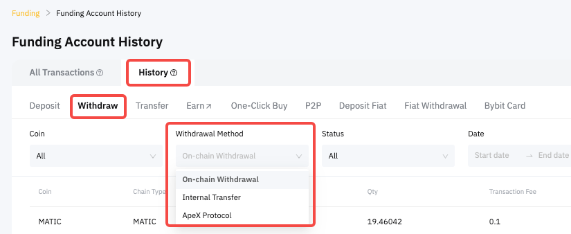 Langkah 3: Buka Riwayat → Penarikan dan pilih metode penarikan yang Anda gunakan untuk melakukan penarikan.