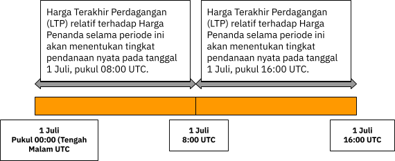 - Tingkat pendanaan yang dihitung antara pukul 15:00 WIB dan 23:00 WIB akan dipertukarkan pada pukul 23:00 WIB.