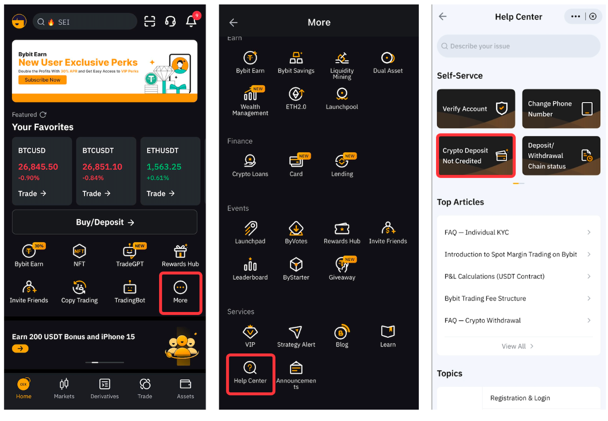 Jika Anda menggunakan Aplikasi Bybit, silakan ketuk Selengkapnya di beranda dan ketuk Pusat Bantuan.