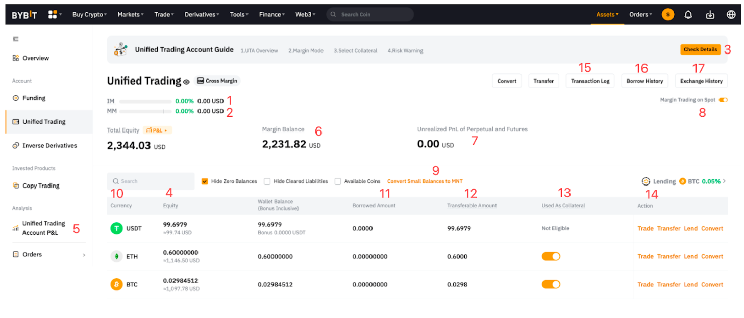 - Perhatikan bahwa nilai yang ditampilkan di sini adalah nilai aset setelah menghitung rasio nilai jaminan pada saldo dompet dan bukan jumlah aktual USD yang ada di akun Anda.