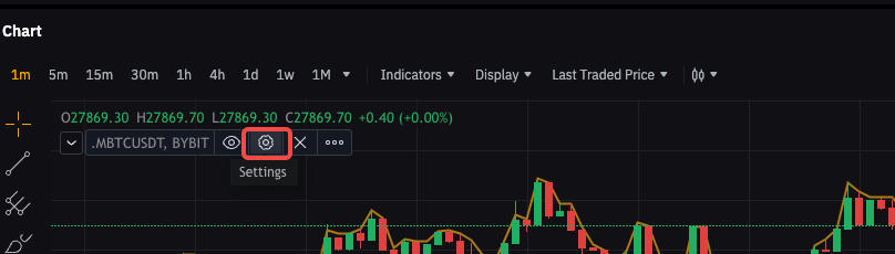 Metode 2: Pada grafik LTP, ambil BTCUSDT sebagai contoh, dan perhatikan indikator MBTCUSDT, BYBIT.