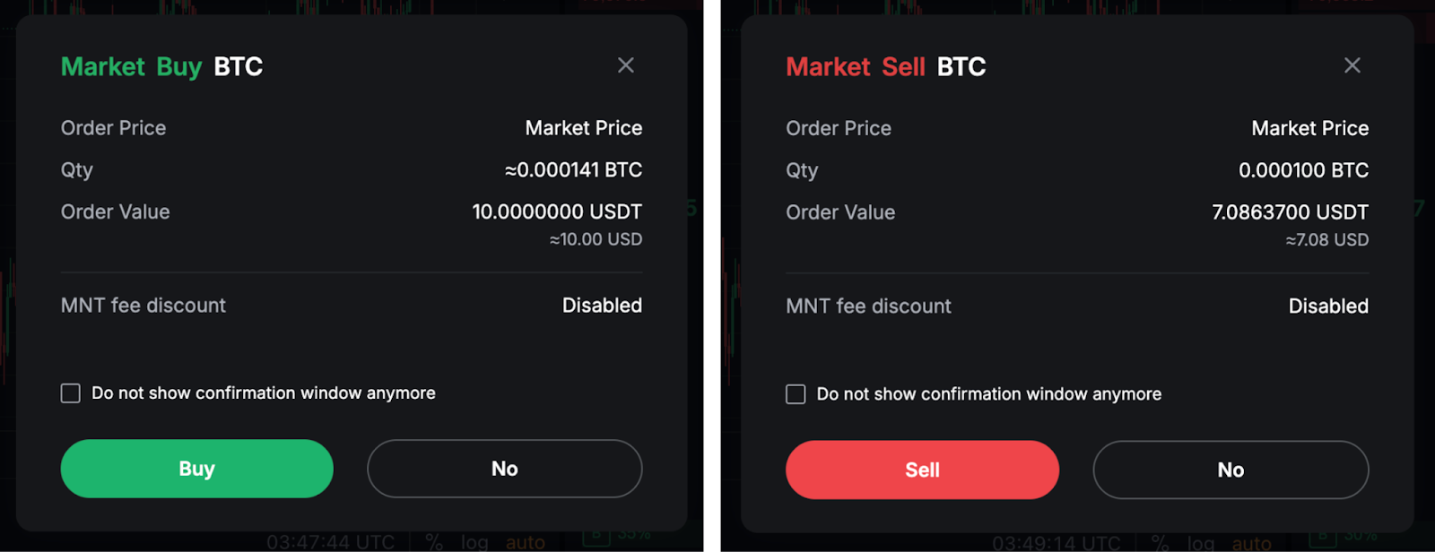 Step 3: A confirmation window will pop up. Ensure your order details are correct then click on Buy or Sell.