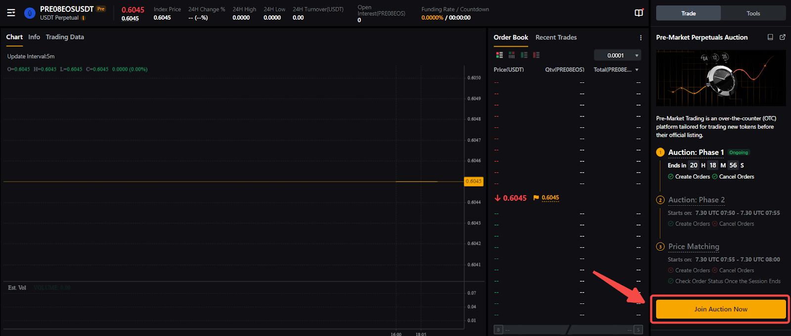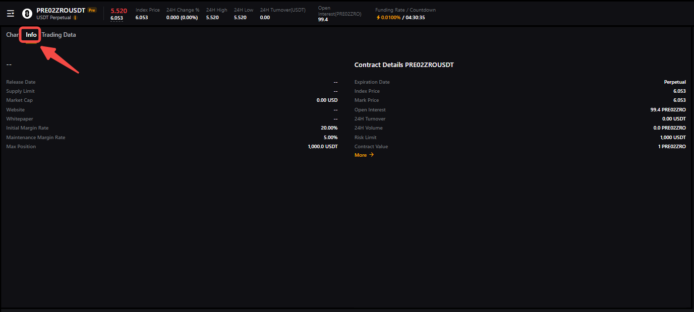 Шаг 2. Чтобы начать торговлю, нажмите на название премаркет бессрочного контракта.