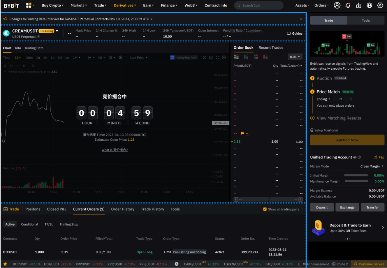 На данном этапе премаркет-торговля бессрочными контрактами осуществляется так же, как и стандартная торговля деривативами, при этом основное различие заключается в расчёте цены индекса. Как только контракт станет официальным бессрочным контрактом, будет размещено объявление.