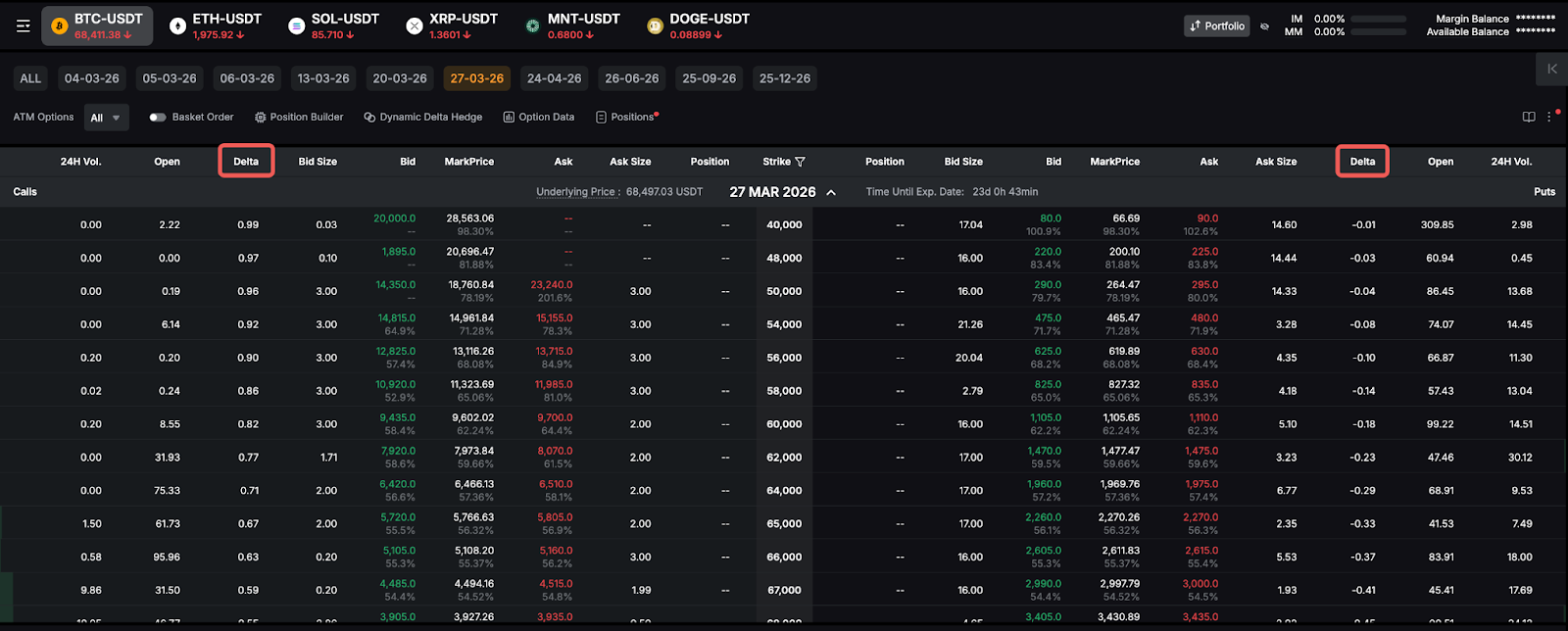Столбец с показателями дельты можно найти на странице цепочки опционов. В столбце приводятся значения дельты для каждого опциона. Левый столбец — для опционов колл, правый — для опционов пут.