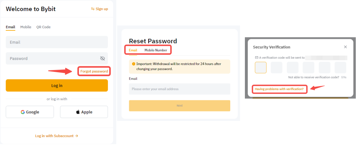 В Bybit внедрены новые функции безопасности. Теперь вы можете отправлять запросы на изменение данных аккаунта через страницу входа. Обратите внимание, что эти функции самообслуживания недоступны для приостановленных или ограниченных аккаунтов.