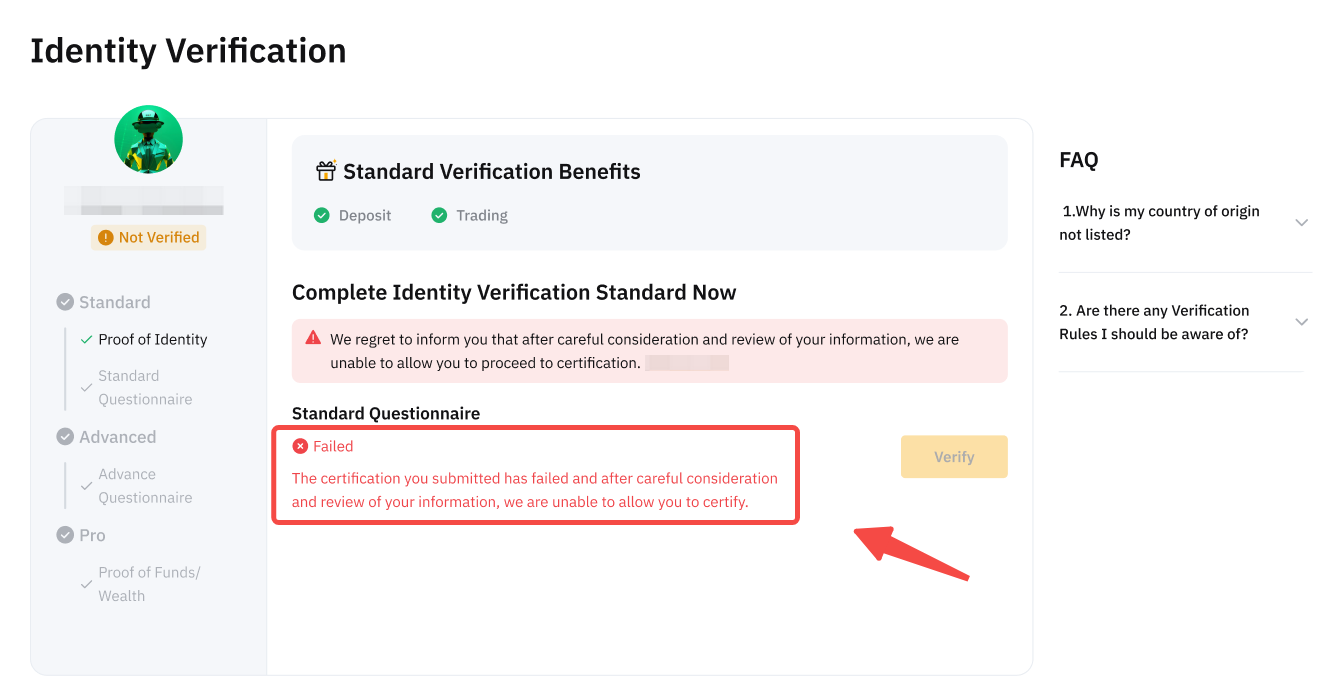 或者,您可以通过单击 [?] 图标从KYC身份认证页面查看您的 KYC 认证结果。