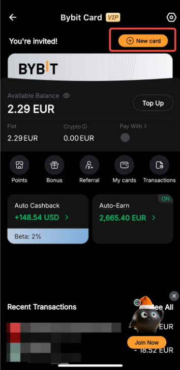 - If you are no longer an EEA resident, you may go to your Bybit App and click Add New Card. You will see an option to apply for a new card program there. Please note that eligibility is subject to successfully meeting the required KYC criteria.