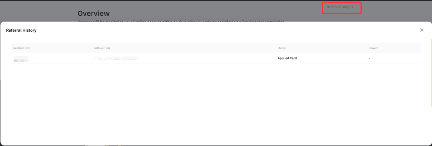 奖励存入您的账户后,您将收到通知。请注意,奖励将在受邀好友完成任务后的 10 天内发放。您也可以在 Bybit Card 推荐计划上查看邀请记录,或在推荐计划页点击的“我的邀请”。