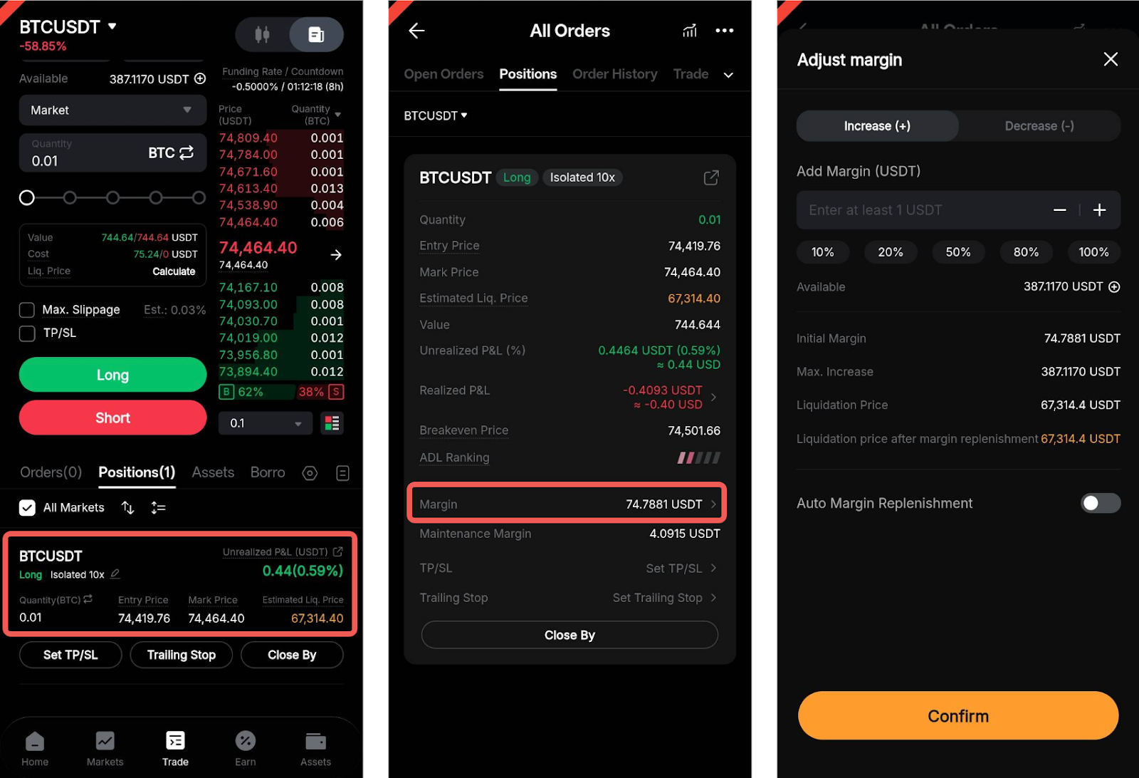 是的,在使用逐仓保证金模式时,您可以手动为您的仓位追加保证金,以助于降低强平风险。