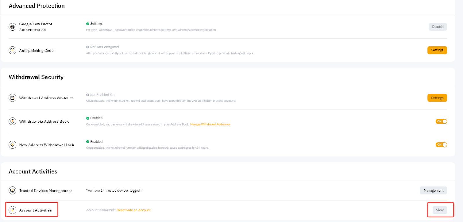 如果您发现或怀疑您的账户有被骇客入侵的风险,建议您从账户安全页面或通过新提现地址或新设备登录通知邮件中的链接停用您的账户。
