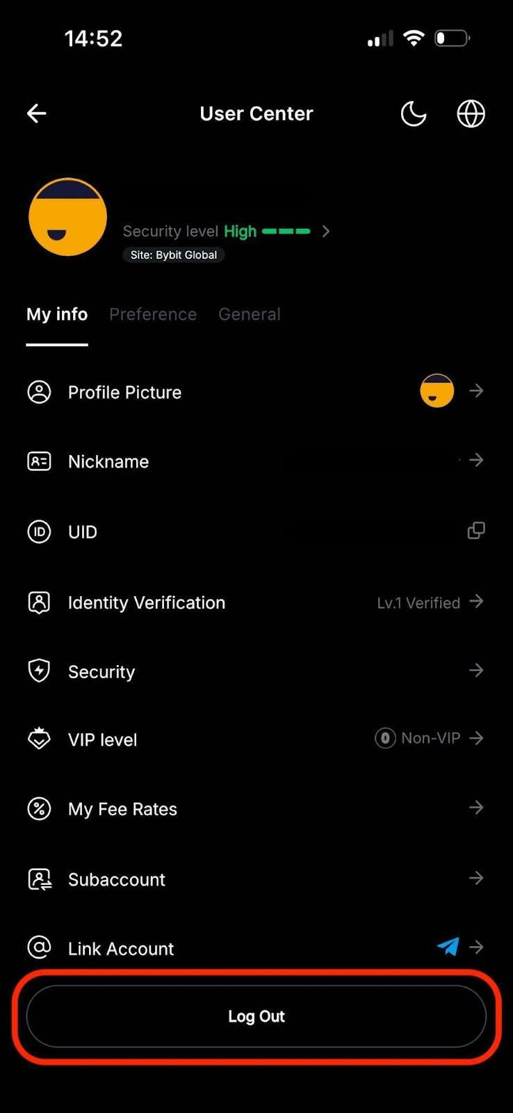 要通过应用程序登出您的 Bybit 帐户,您可以转到您的用户中心,然后单击登出选项卡。对于网站,您可以点击右上角的个人资料图标(步骤 1),然后点击登出选项卡(步骤 2)。
