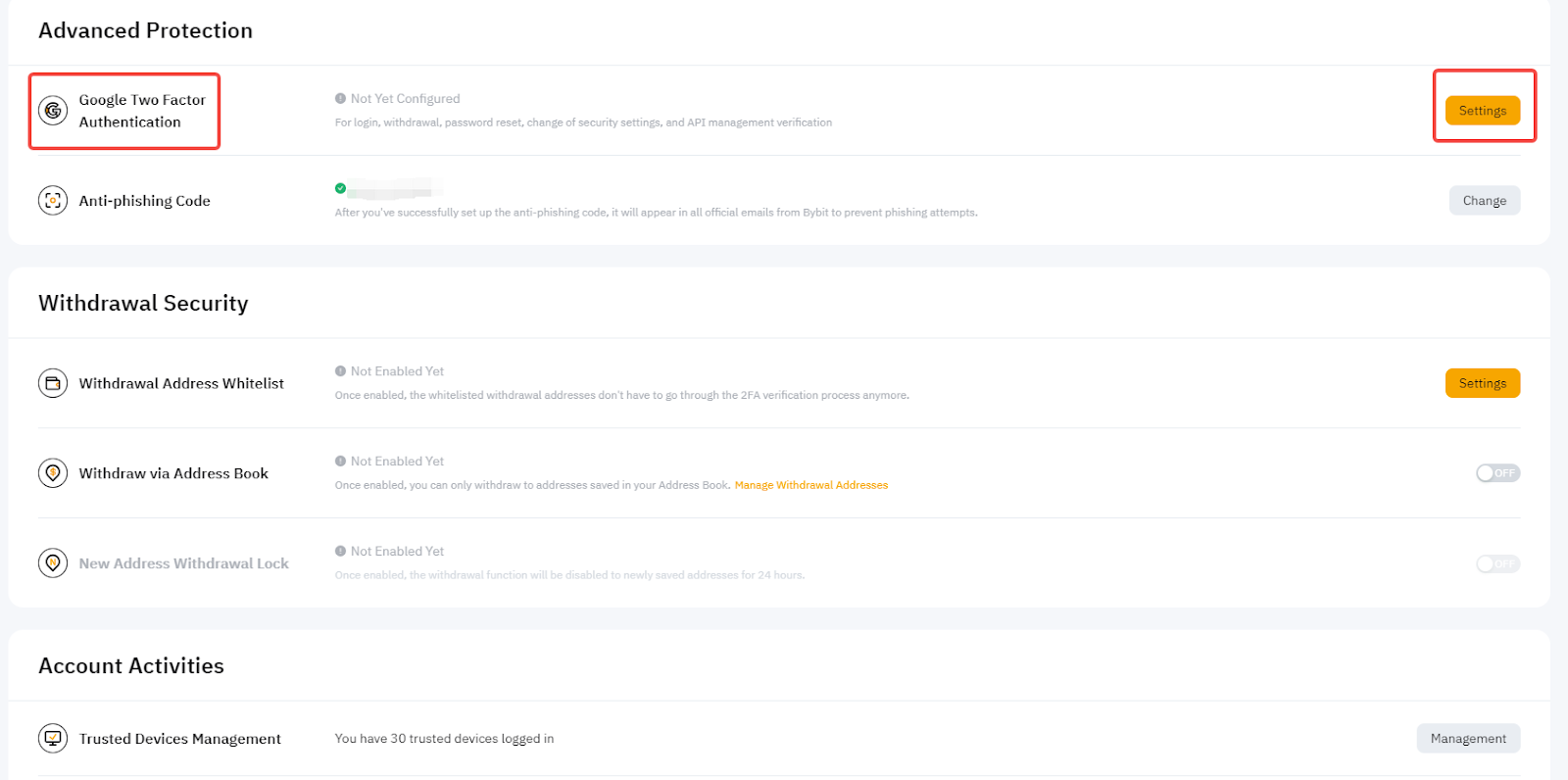 为防止网络钓鱼企图,Bybit 强烈建议通过网站或应用程序设置反网络钓鱼代码。如果您尚未设置您的反网络钓鱼代码,请转到您的帐户和安全页面,然后按照本指南进行操作。