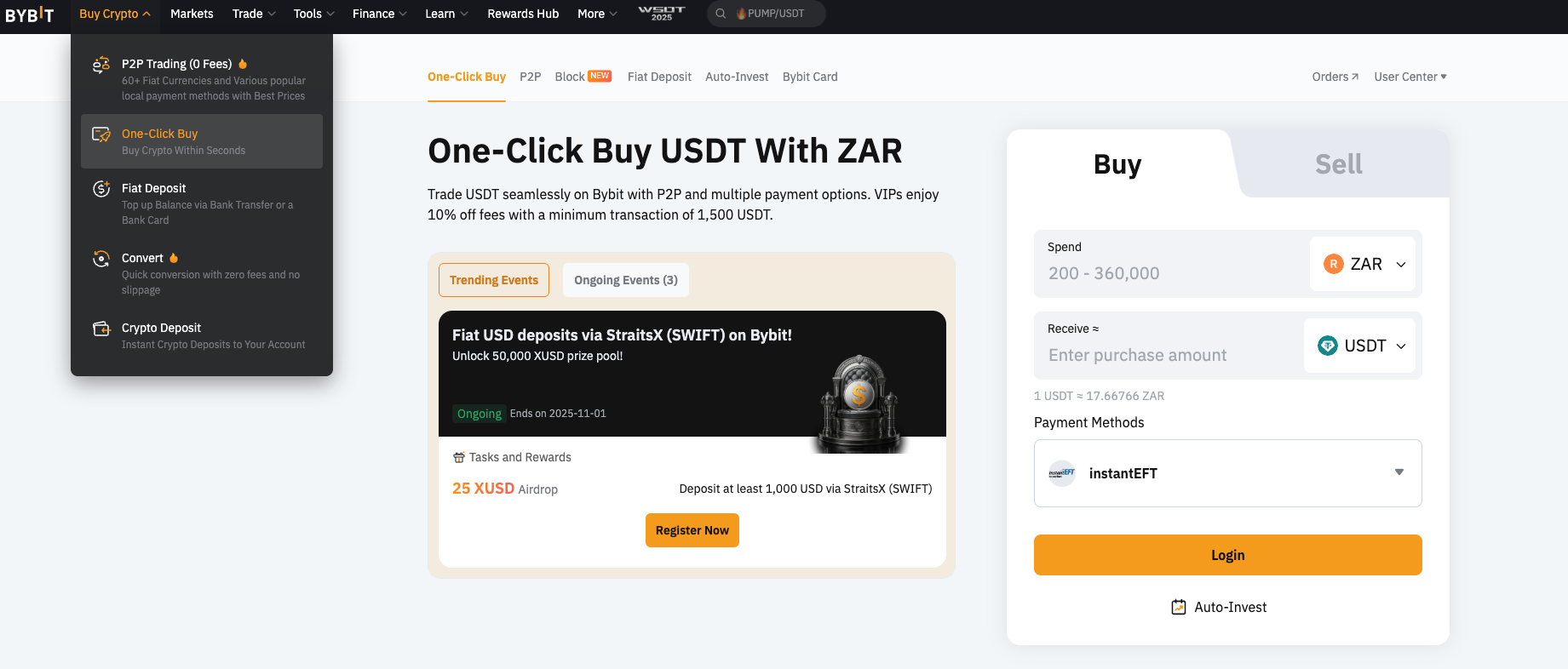 Bybit's Instant EFT service for South African Rand (ZAR) deposits makes investing in cryptocurrency simple, fast, and secure with funds typically arriving within minutes.