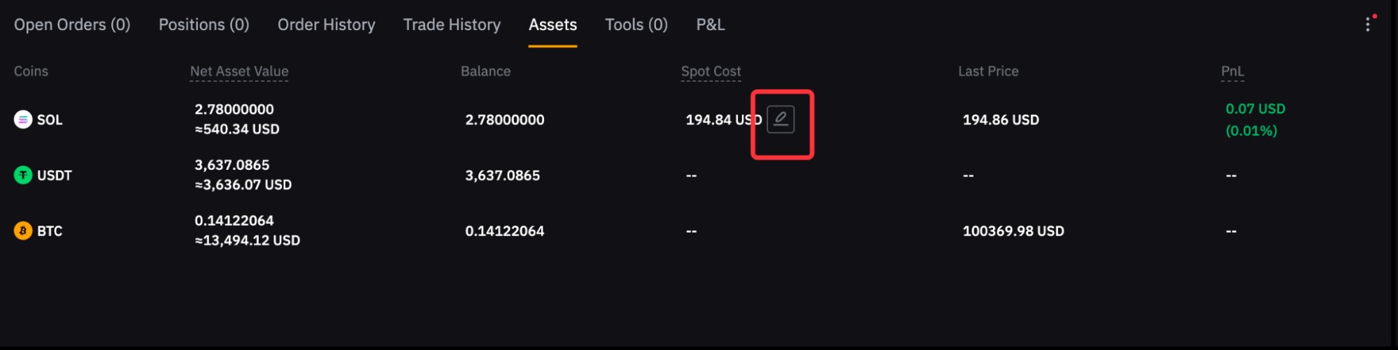 Bybit 现货成本价基于平台自2025年2月12日以来收集的数据计算得出。如系统显示的成本价与您的实际成本不符,您可手动修改。