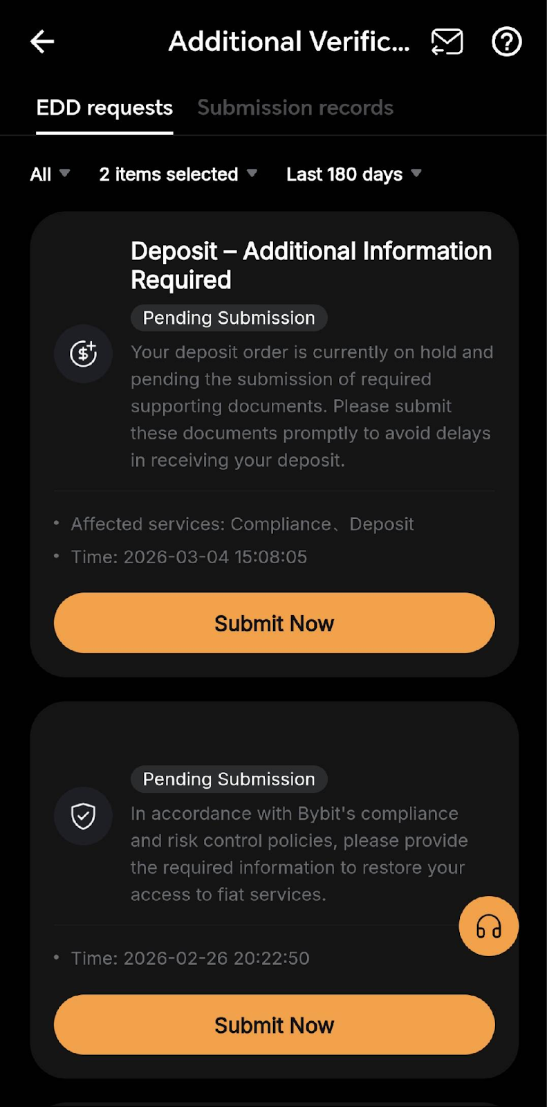 – 目前,可以取消充值、提币、跨赛区划转、法币买卖加密货币、Bybit Card 申请以及旅行规则涵盖的其他场景的 EDD 验证。
