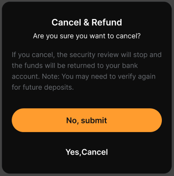 – 只有当交易的 EDD 状态为待修改时,您才能取消交易。如果状态为审核中或已拒绝,则无法取消,您需要提交所需信息才能完成验证。