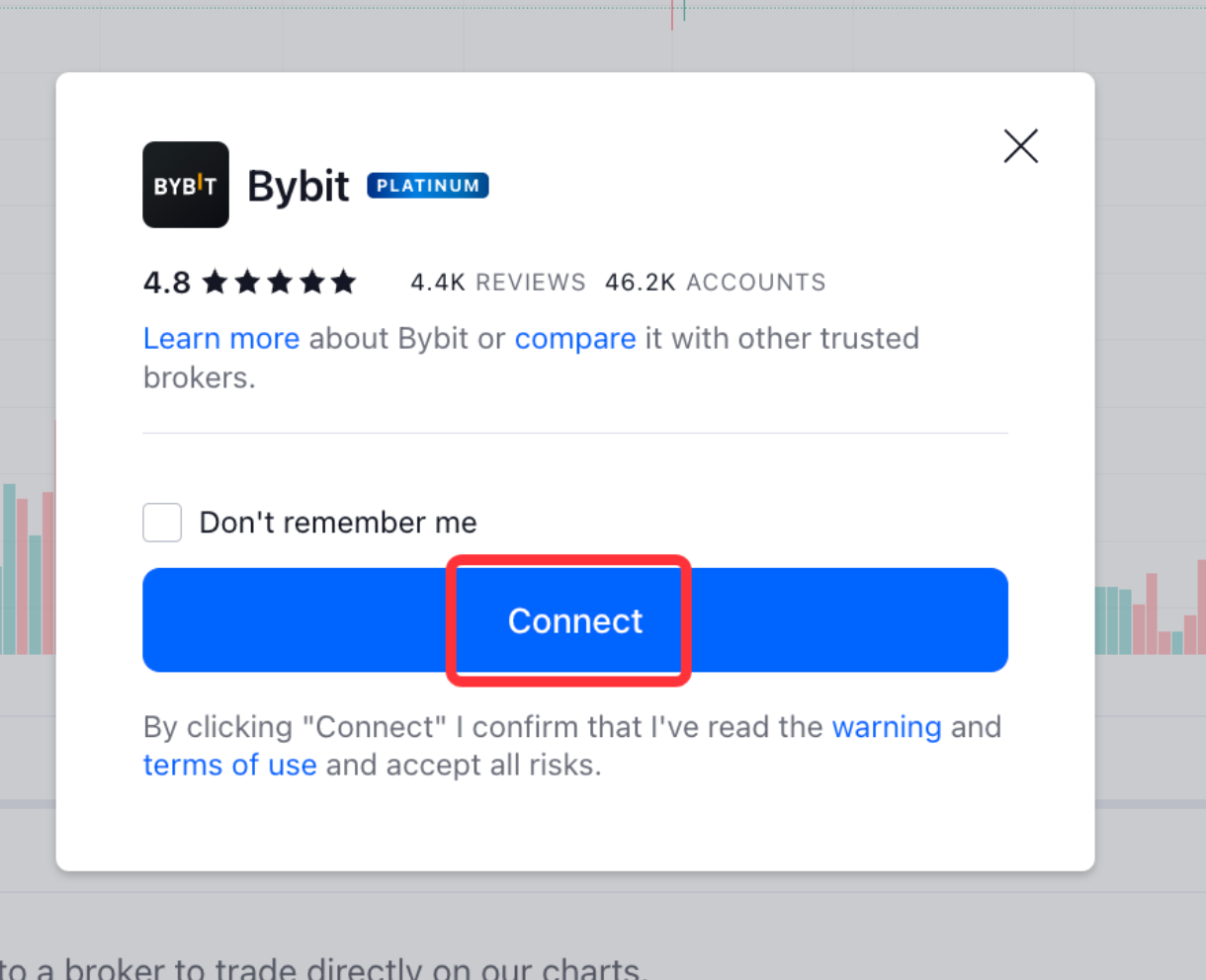 请注意,在 TradingView 上与经纪商连接后,出于安全目的 TradingView 有施加相关限制,链接状态只能维持 24 小时。点此详细了解如何在 TradingView 中进行 Bybit 交易。