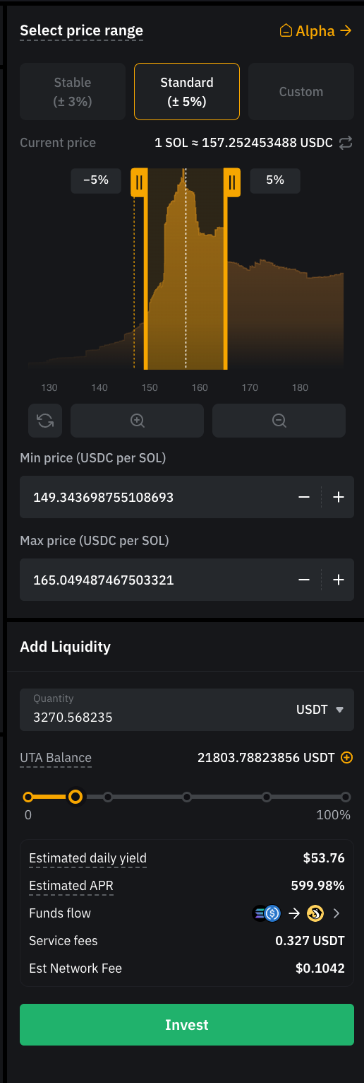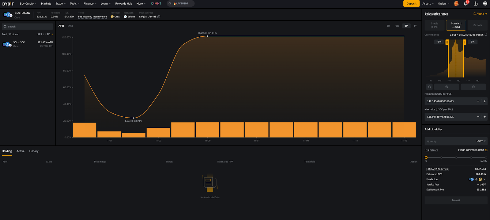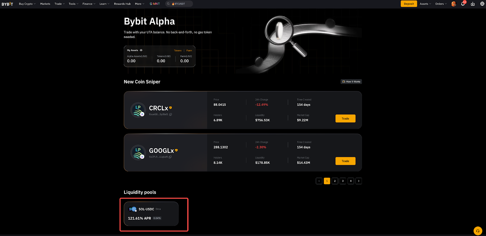 • Supported currencies: Bybit Alpha supports a wide range of popular cryptocurrencies, such as SOL, bbSOL, USDT and USDC, ensuring flexibility and accessibility for all users.