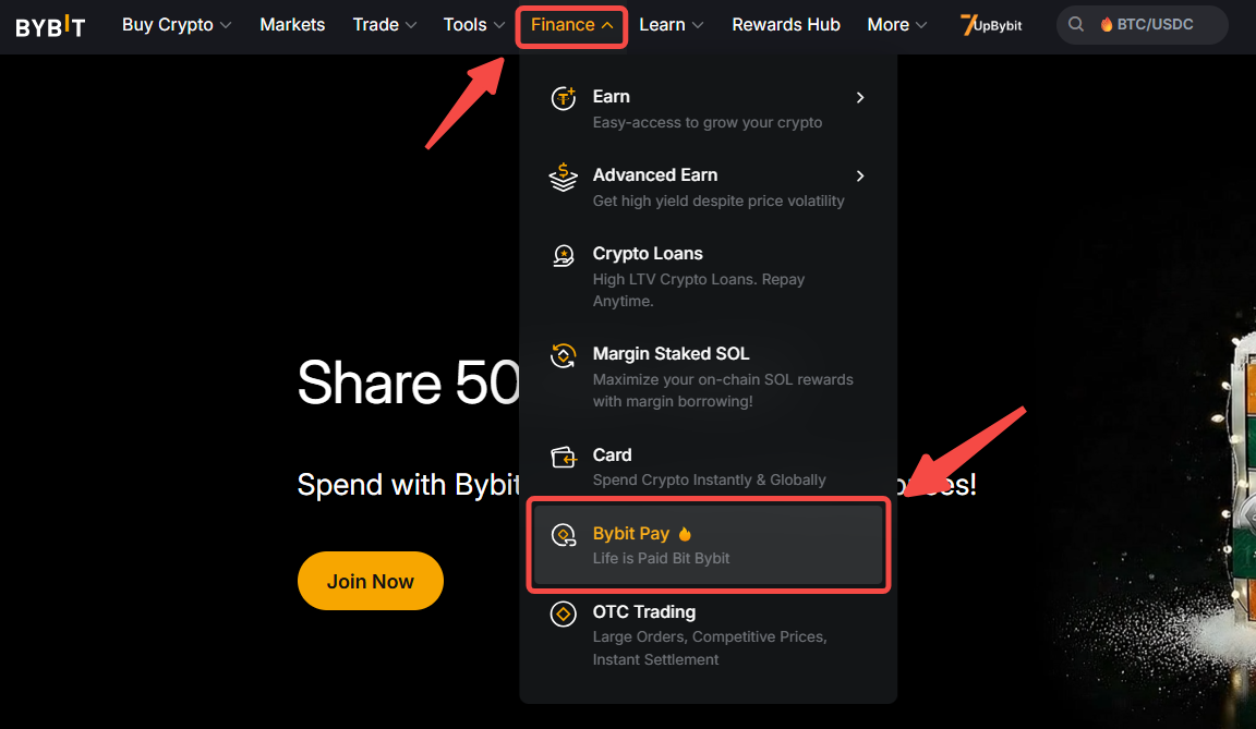 第 1 步:在“Bybit”主页上,单击导航栏上的“金融”→“Bybit Pay”,进入“Bybit Pay”页面。然后,单击发送按钮。
