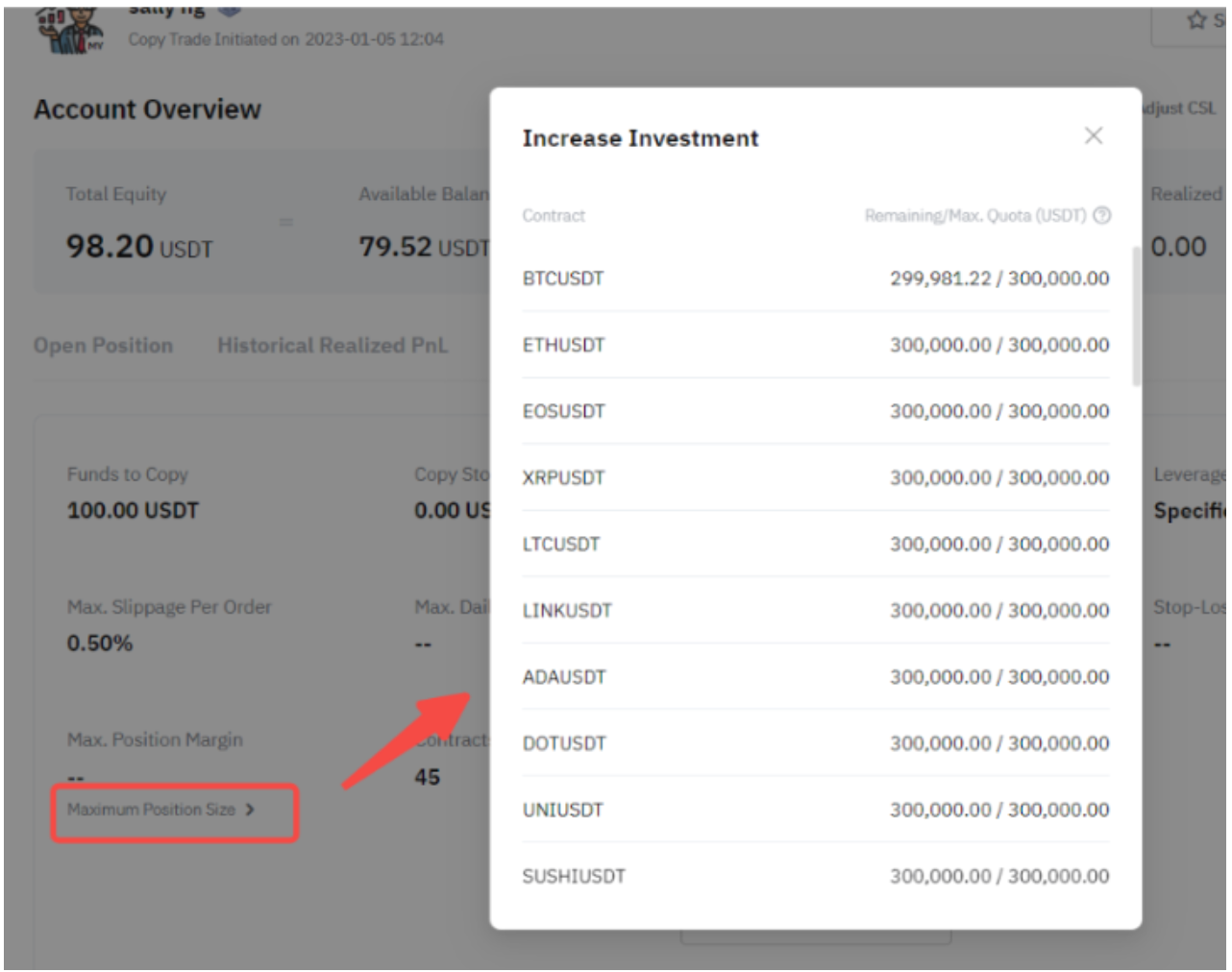 最大仓位数量显示了您可以进行跟单的剩余和最大订单价值,根据您的做多和做空方向的仓位数量计算得出。