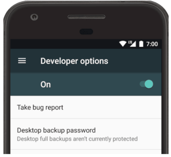 第 2 步:在开发者选项页面上,轻点获取错误报告。
