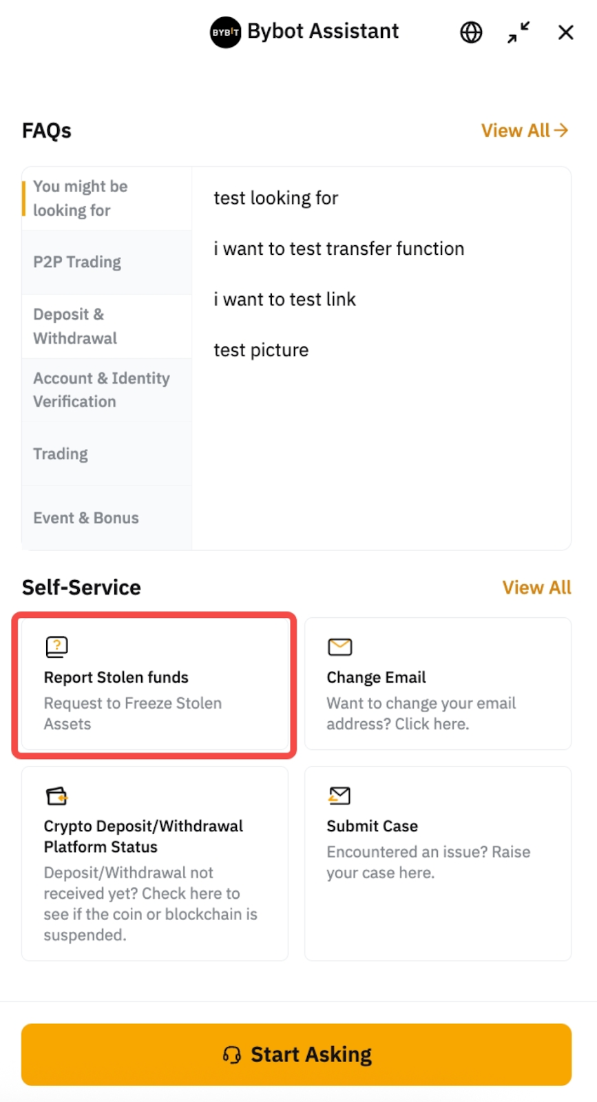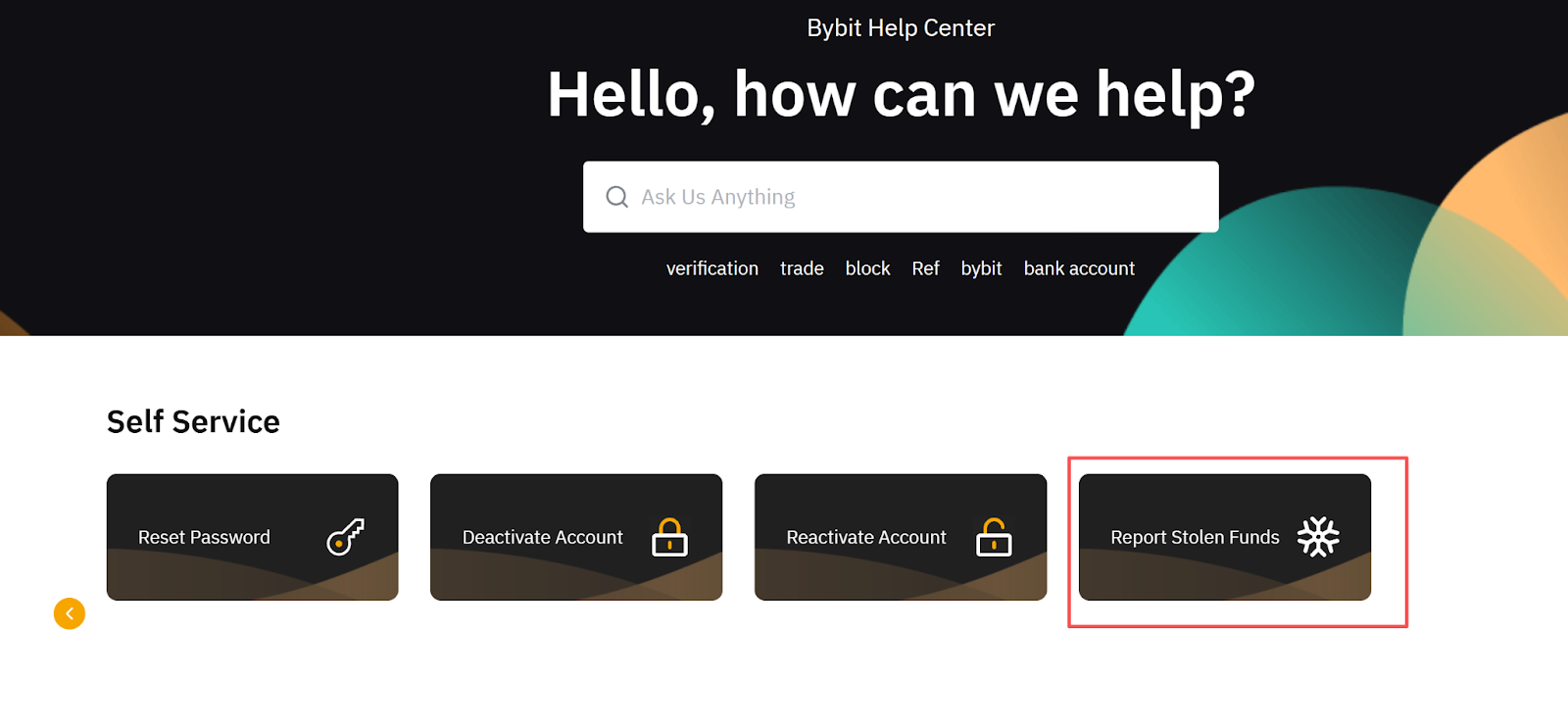 若您遭遇网络盗窃且被盗资金已被转移至 Bybit,您可以向平台举报并向安全团队申请协助您追索资产。