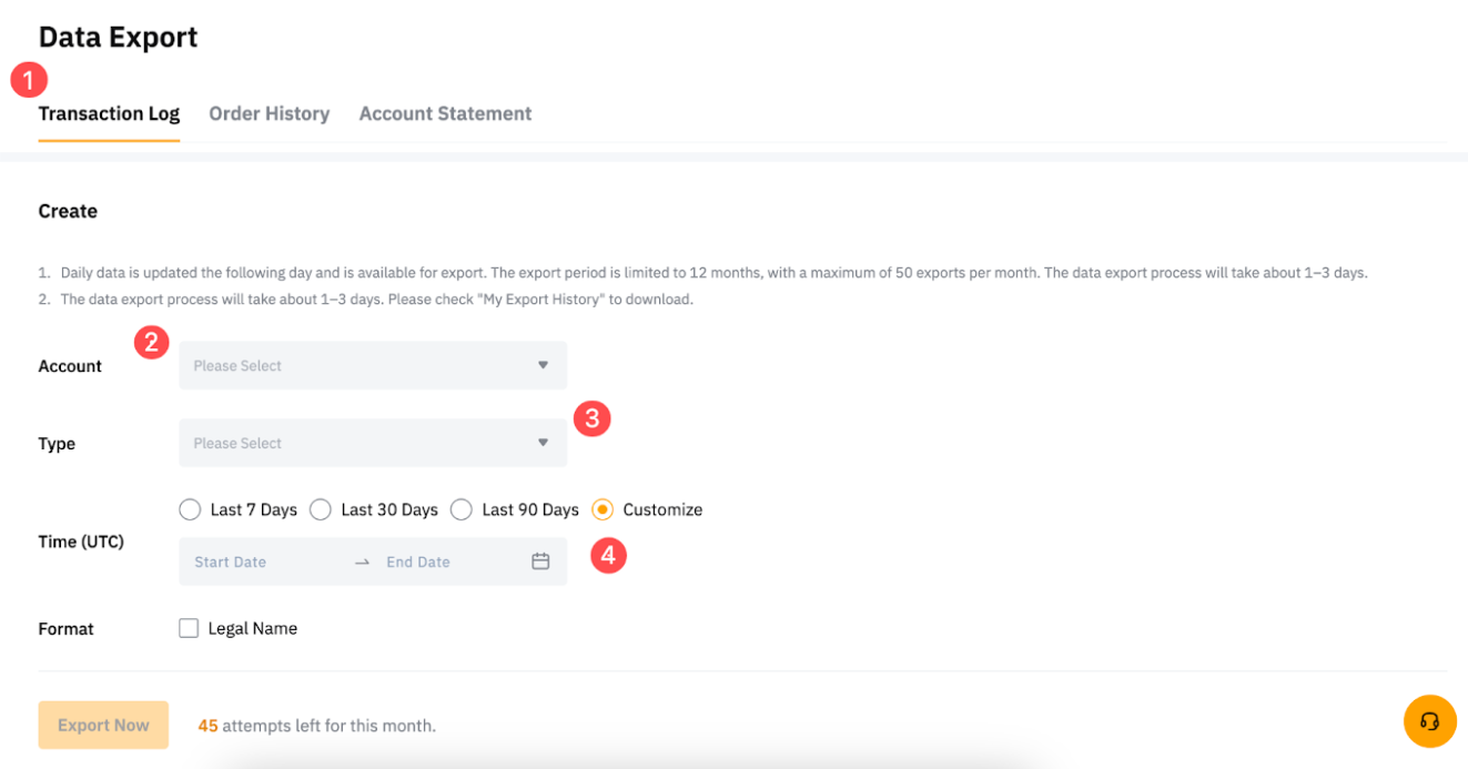 — 部分数据可能无法在账户对账单中使用,例如现货或衍生品订单历史记录。要导出这些数据,请直接前往每个产品历史记录页面,然后点击右上角的导出按钮。