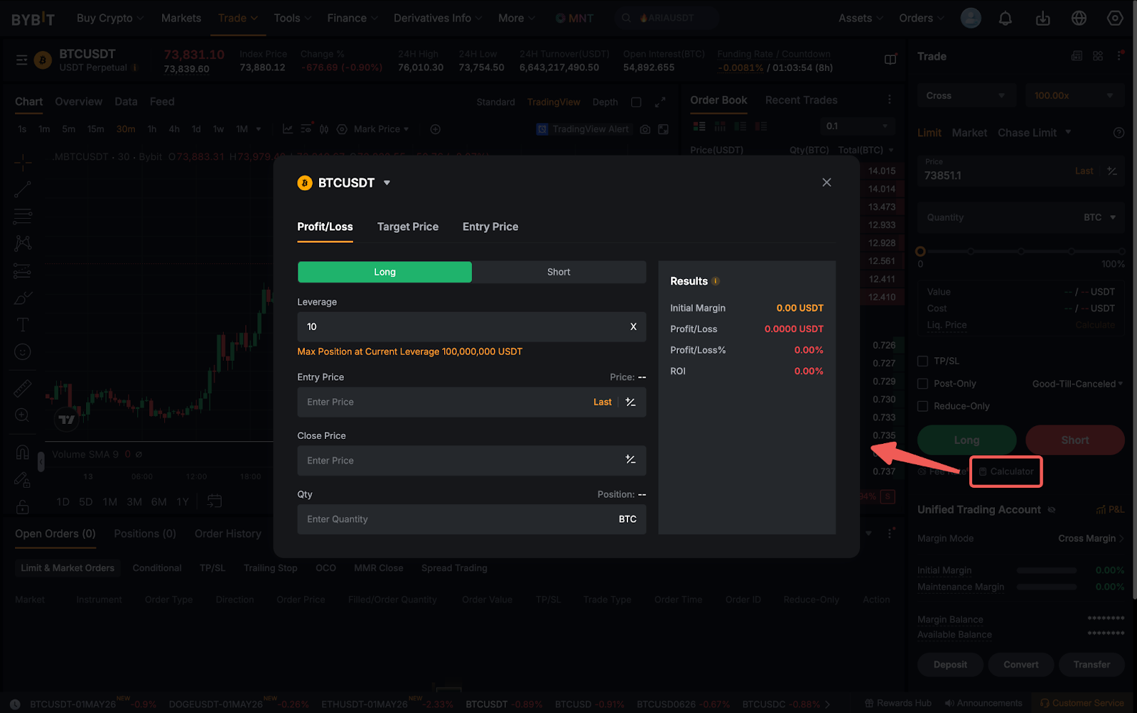 交易者可以使用 Bybit 的计算器来确定其潜在交易的预估收益、目标价格、强平价格(仅适用于标准账户)以及开仓均价。您可以参考 Bybit 计算器 以获取更多详情。
