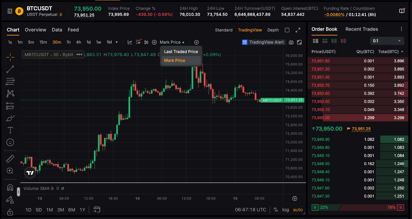 以下是 Bybit 永续和交割合约交易页面可用功能的总览。