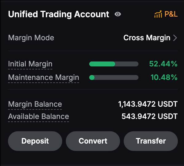 IM | 起始保证金显示开仓所需的最低保证金。 交易者使用的杠杆直接影响起始保证金:杠杆越低,所需的起始保证金越多。 在逐仓保证金模式下,交易者可以调整其起始保证金来修改其强平价格,并更好地保护其仓位。 在全仓或组合保证金模式下,交易者会使用结算币种(或UTA下的质押币种)的所有可用余额来防止强制平仓。 阅读更多: |