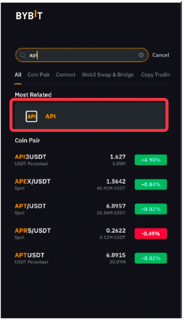 要检索 API 文档,请在搜索栏中输入“API”,然后点击“API 文档”。