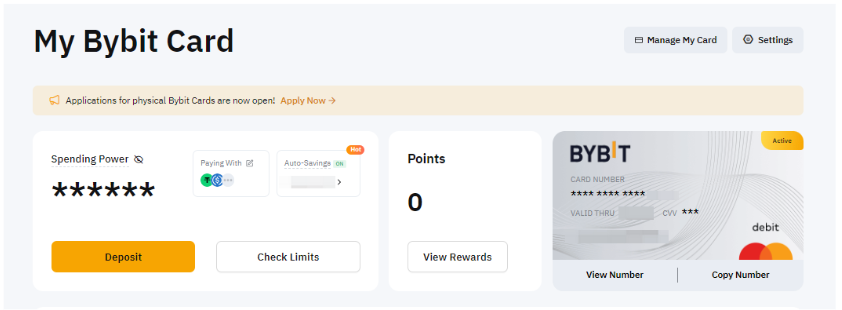 For the crypto used, you can select your preferred payment crypto for your Bybit Card transactions on the My Bybit Card page. Currently, supported cryptocurrencies are BTC, ETH, XRP, USDT, USDC and TON. You can make a purchase using your Bybit Card, the system will follow the payment priority you've set. Please refer to this FAQ to learn how to manage your spending currencies.