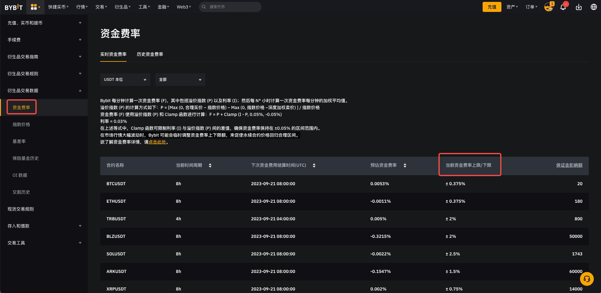 在市场行情大幅波动时,Bybit 可能会临时调整资金费率上下限额,来促使永续合约价格回归合理区间。