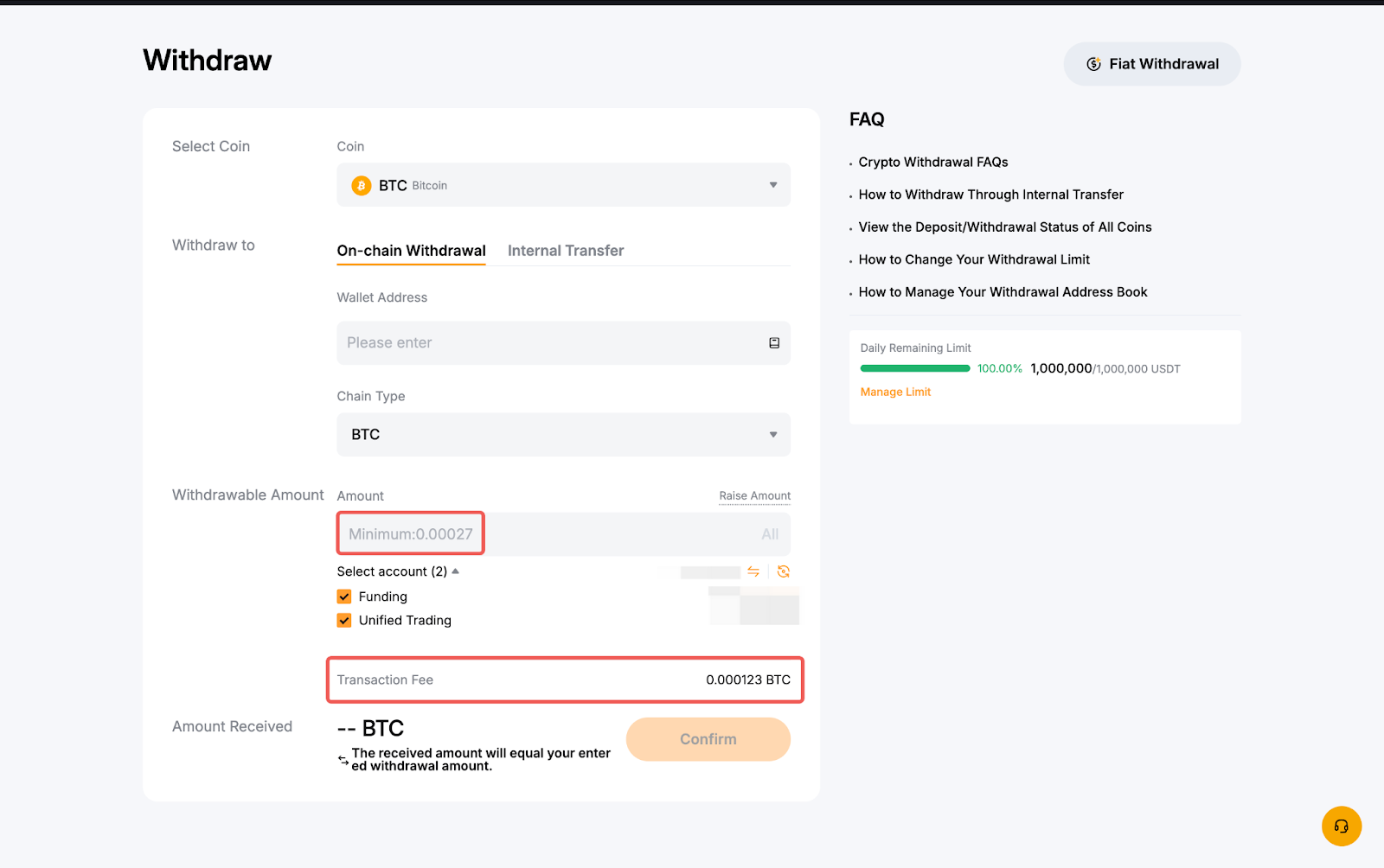 2. 提币手续费