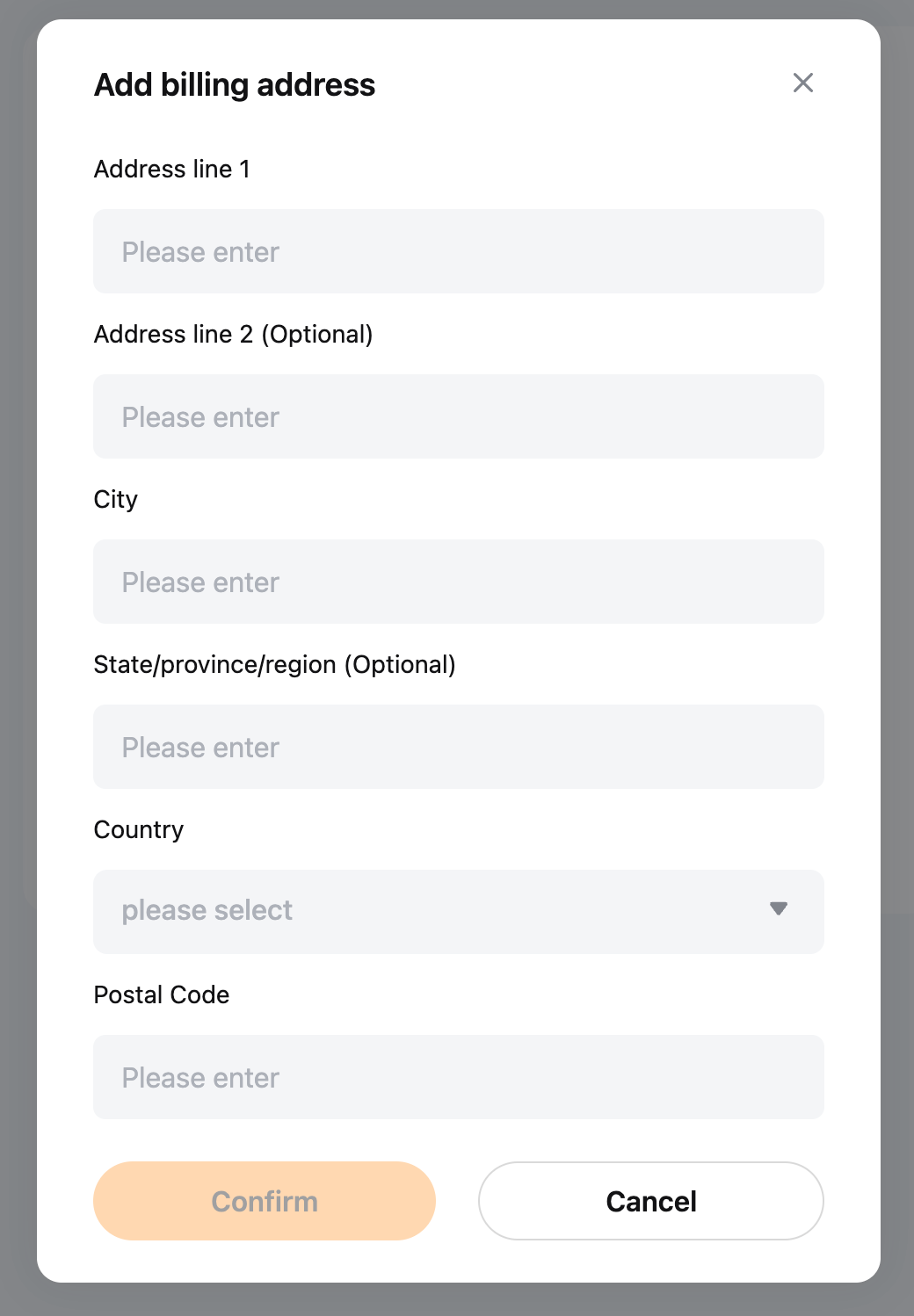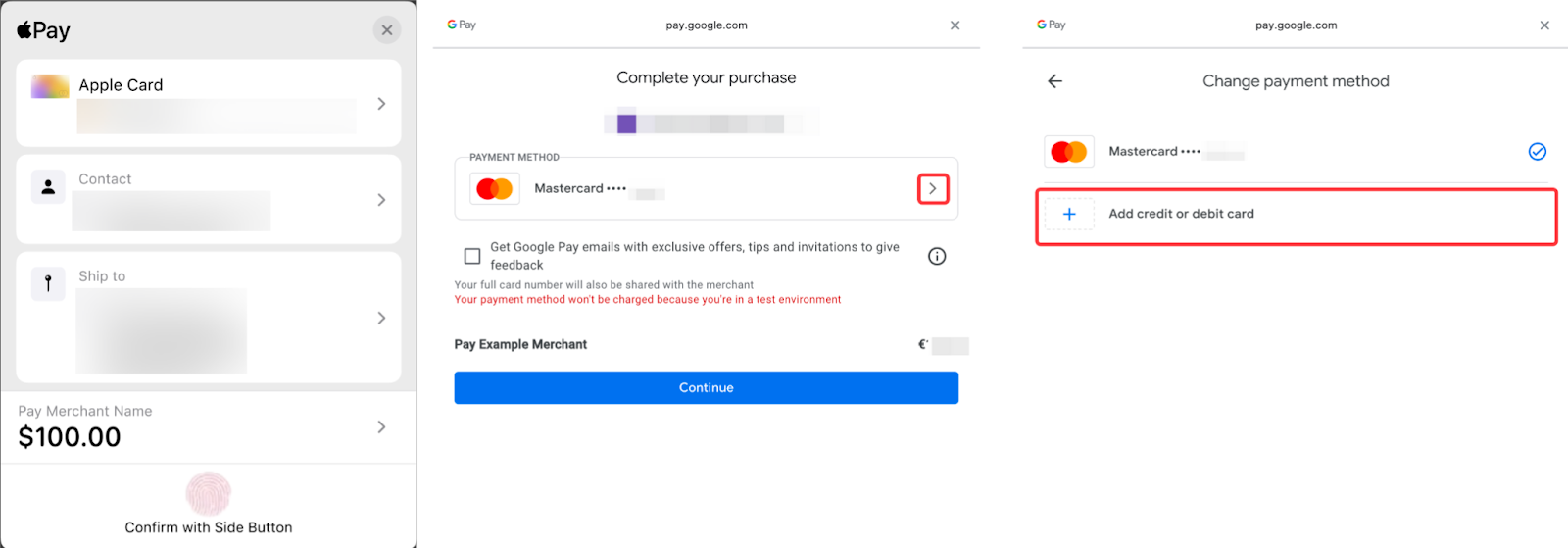 注意:請確保在輸入銀行卡詳細資訊之前選擇您的國家/地區,因為 Google Pay/Apple Pay 可能需要特定格式。
