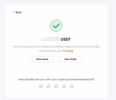 您可以在快捷買幣訂單頁面追蹤您的充值。