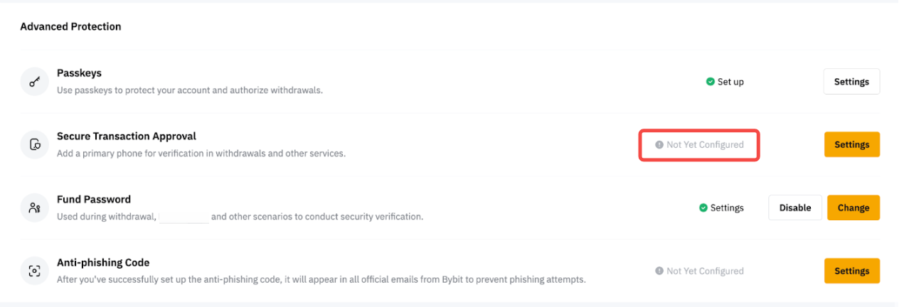 安全交易審批功能僅支援在 Bybit App 上啟用。請按照以下步驟操作: