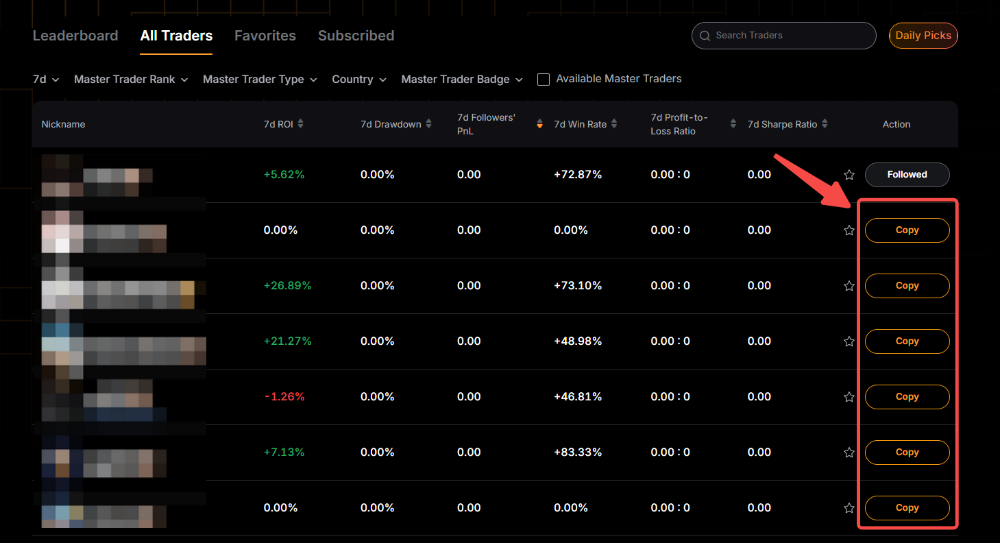 跟單模式:目前,在主動跟隨交易達人時,暫不支援切換跟單模式。要更改跟單模式,您需要先取消對交易達人的跟單,然後以所需模式重新開始跟單。請注意,如果相應交易達人的跟單名額已滿,則可能無法再次對其進行跟單。