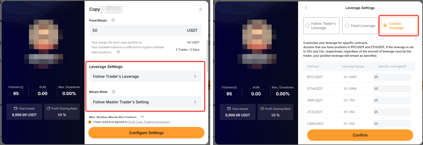 保證金模式與槓桿設置:要更改保證金模式或槓桿,您可以參閱上述有關修改跟單設置的步驟。槓桿調整不適用於智能跟單模式,因為您將跟隨交易達人的槓桿。