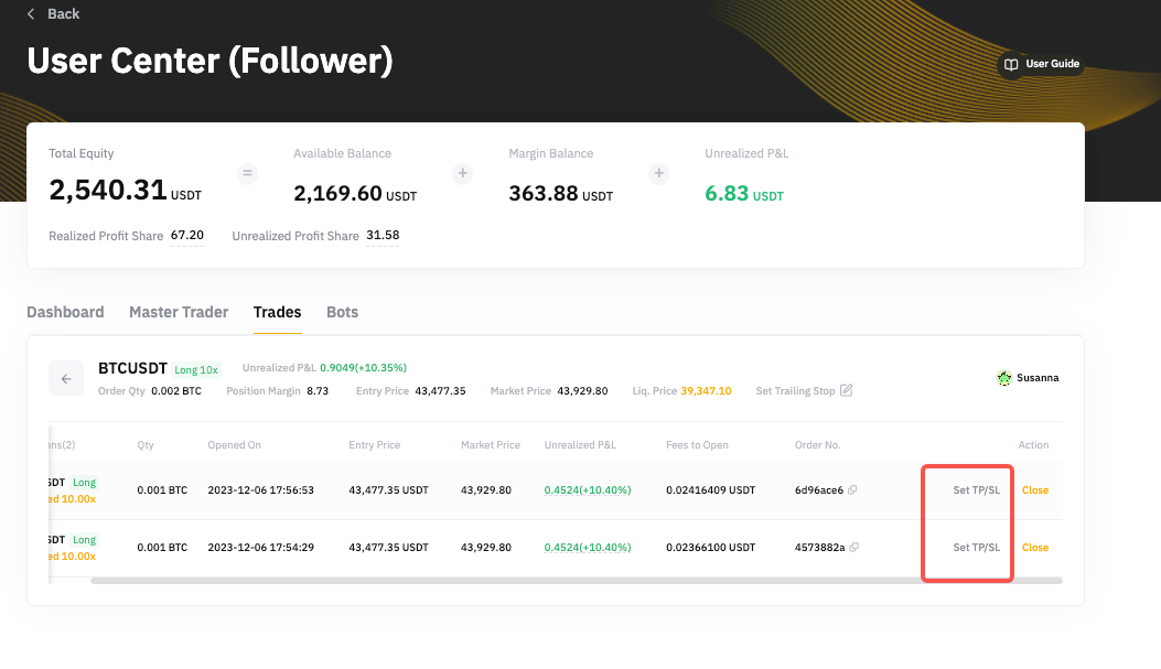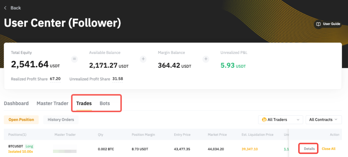 第 2 步:前往交易選項卡,查看當前跟單的 USDT 永續合約交易。