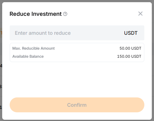 — 您可以在「減少跟單本金」窗口中查看「最大可減金額」。