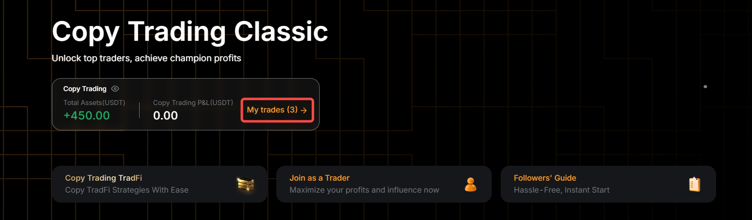 第 1 步:要查看跟單倉位,點擊我的交易頁面上的我的跟單交易經典版,進入跟單用戶中心。