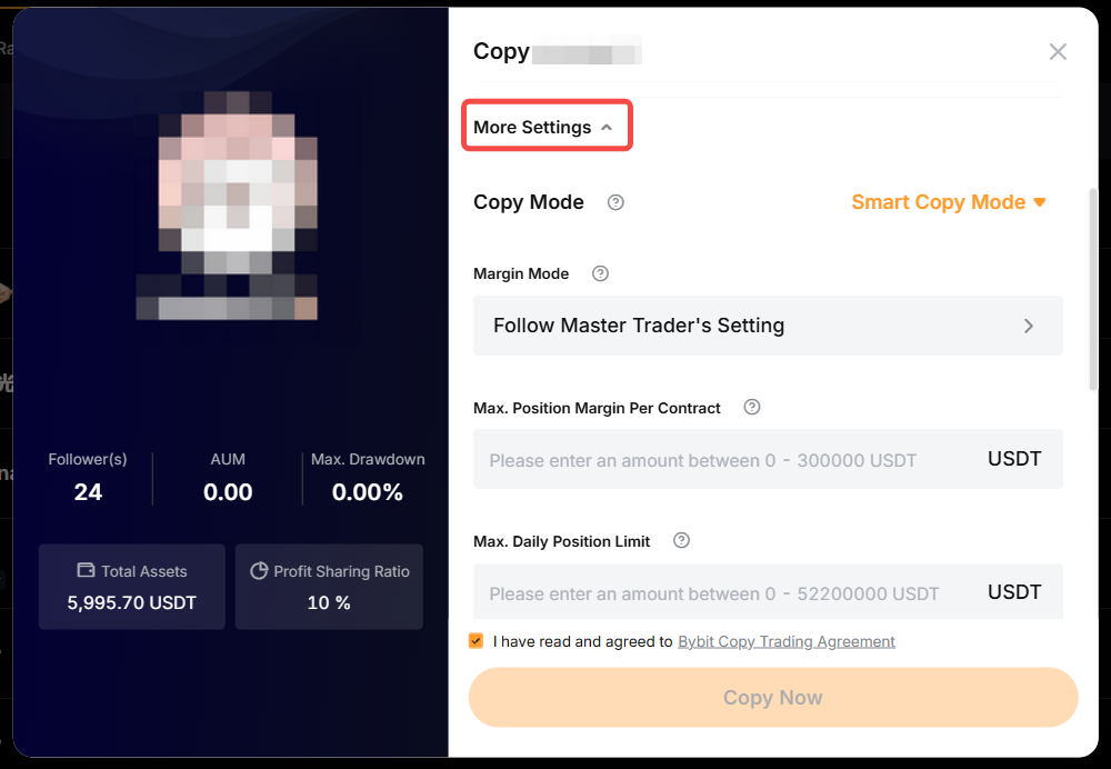 第 4 步:點擊更多設置以配置其他跟單交易設置。
