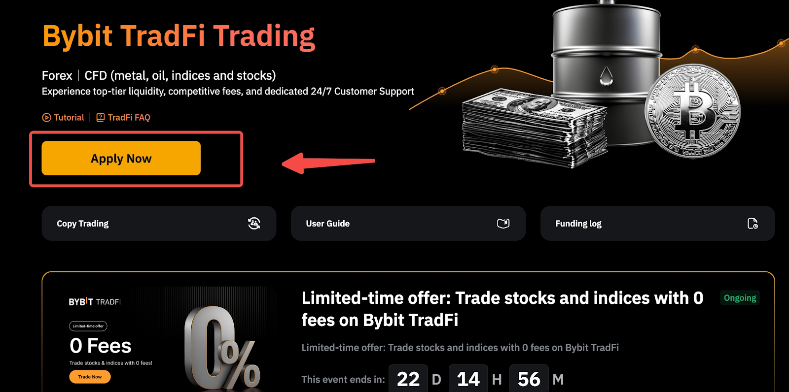 Bybit 很高興地推出我們全新的 TradFi 產品,現在可以透過我們的網站直接交易。透過 TradFi,您可以存取各種差價合約產品,包括外匯、金屬、指數、石油、商品和美國股票差價合約。
