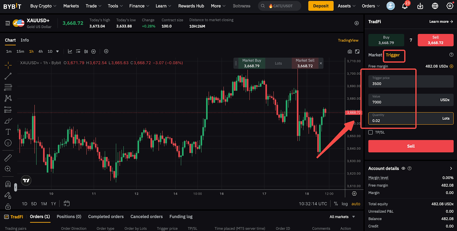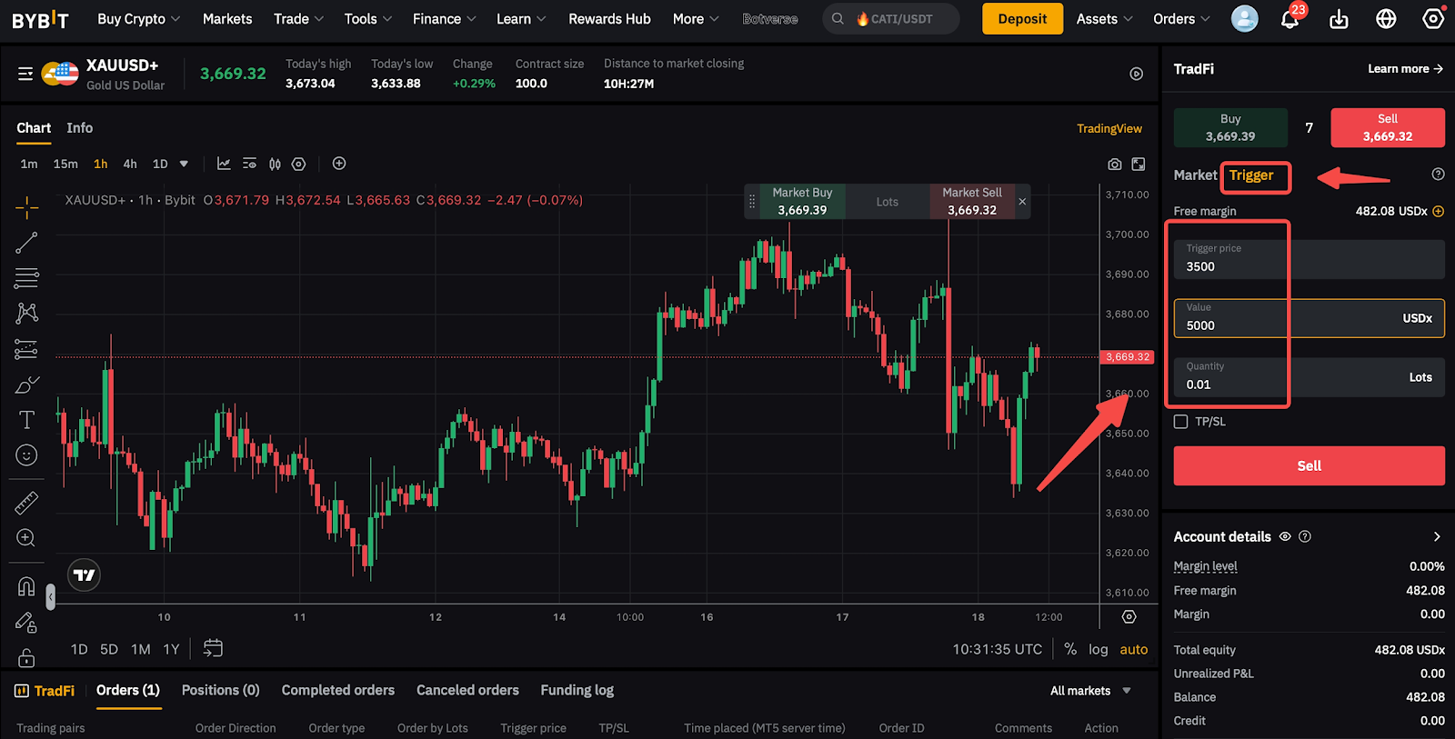 輸入觸發價格和價值的訂單:
