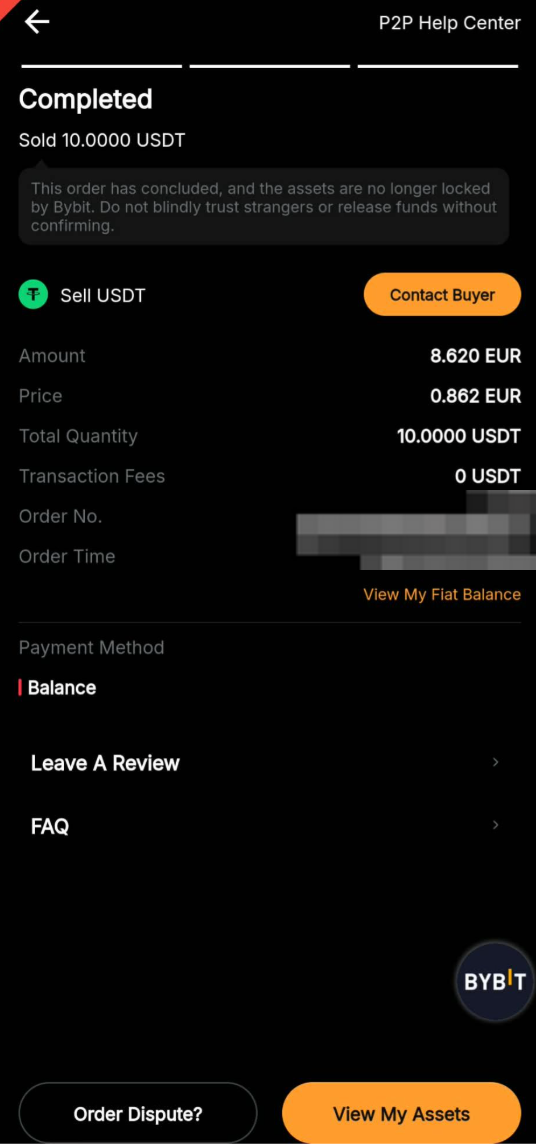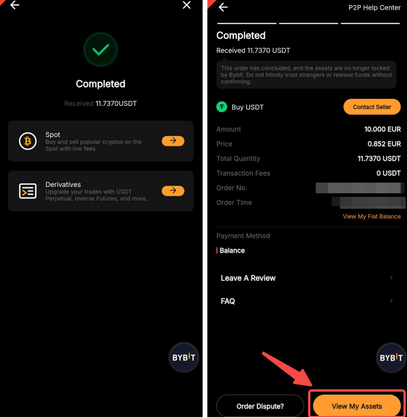 第 7 步:賣家成功發行您購買的代幣後,您可以點擊“查看我的資產”,查看它們以及您的交易歷史記錄。您還可以從 P2P 訂單歷史記錄中查看您的訂單狀態。