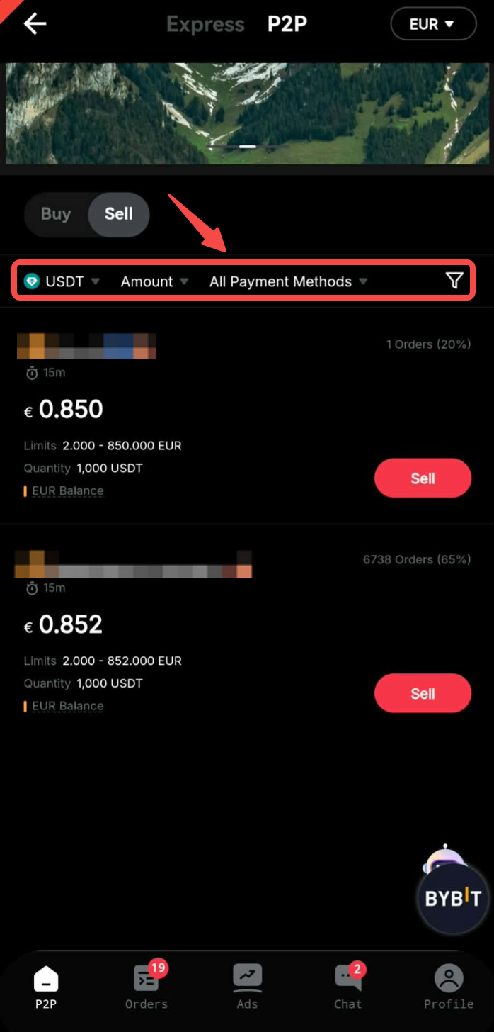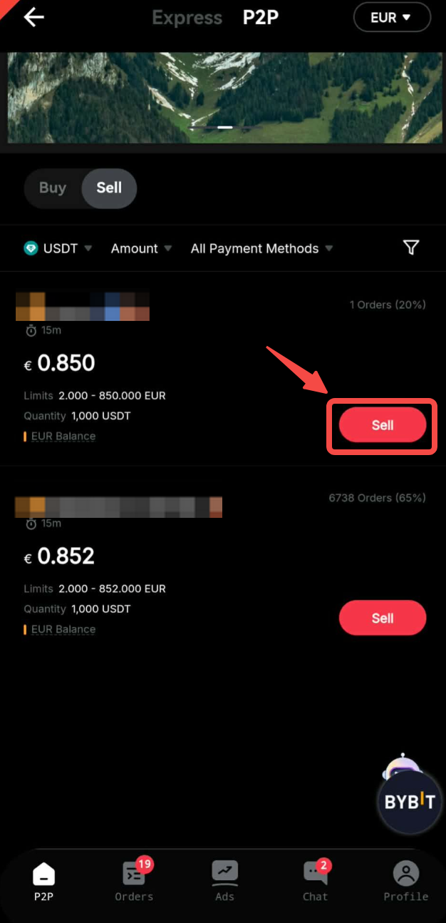 第 3 步:選擇您的首選廣告商,然後單擊賣出。請確保您選擇的廣告商支持法幣付款。