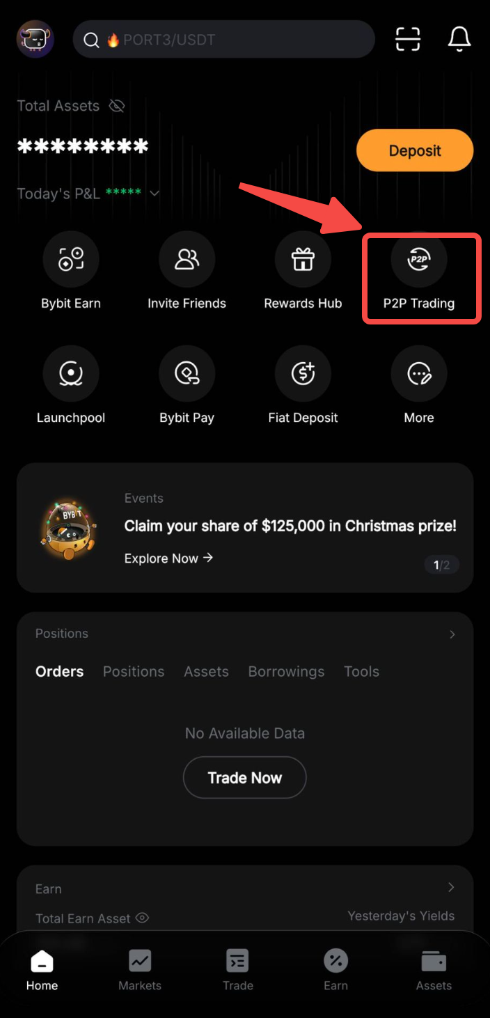 第 1 步:單擊主頁上的 P2P 交易以訪問 P2P 交易頁面。